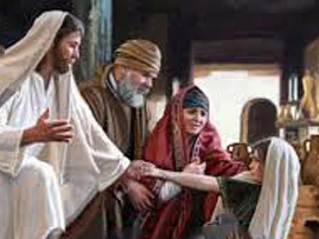 Còn trong phép lạ Chúa Giêsu làm cho em bé sống lại, thì chúng ta thấy hành động của Chúa Giêsu vượt xa điều mà gia đình Vị kỳ mục trưởng hội đường mong đợi: khi con gái duy nhất của ông đã chết, ông đã chạy đi cầu cứu với Chúa Giêsu, vì ông tin rằng Ngài có thể cứu con ông khỏi cái chết này. Một niềm tin mà theo người đời thì ông này có lẽ bị điên khi biết tin con mình đã chết, quá đau khổ ông mới có thể cầu cứu Chúa Giê-su như vậy, một người bình thường ai làm như thế. Nhưng, niềm tin tuyệt đối của ông vào Chúa Giêsu đã giúp ông gặp lại cô con gái, giúp gia đình ông từ nay không còn tiếng khóc than hay khổ sầu. Niềm tin của ông đã làm lây động lòng người, làm cho chúng ta tin tưởng rằng chỉ cần tin tưởng tuyệt đối vào Đức Giê-su thôi chúng ta sẽ được sống trong sự an vui hạnh phúc. Qua trang Tin Mừng phép lạ lại một lần nữa được thực hiện. Phép lạ này đã thay đổi lòng người, thay đổi các định kiến của mọi người thời bấy giờ.