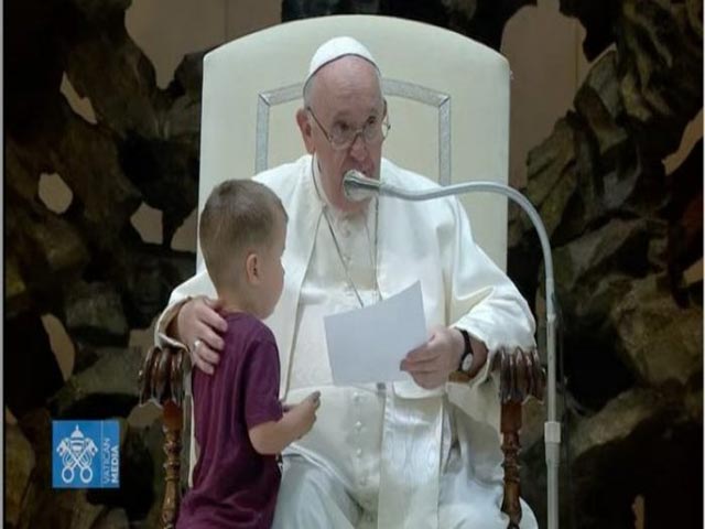 Vào cuối buổi tiếp kiến chung, một em lên bục chạy đến Đức Phanxicô làm giáo dân trong Hội trường Phaolô VI xúc động. Đặt tay lên vai em bé, ngài nói với giáo dân: “Trong buổi tiếp kiến hôm nay, chúng ta nói về cuộc đối thoại giữa người già và người trẻ… Em bé này thật can đảm!”